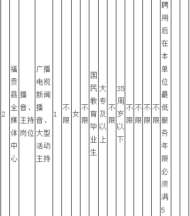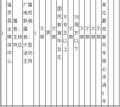 福貢縣全媒體中心廣播電視播音員崗位2名。具體崗位要求詳見下表: